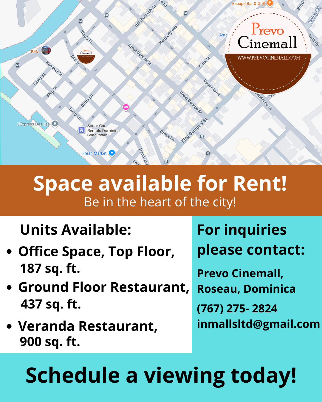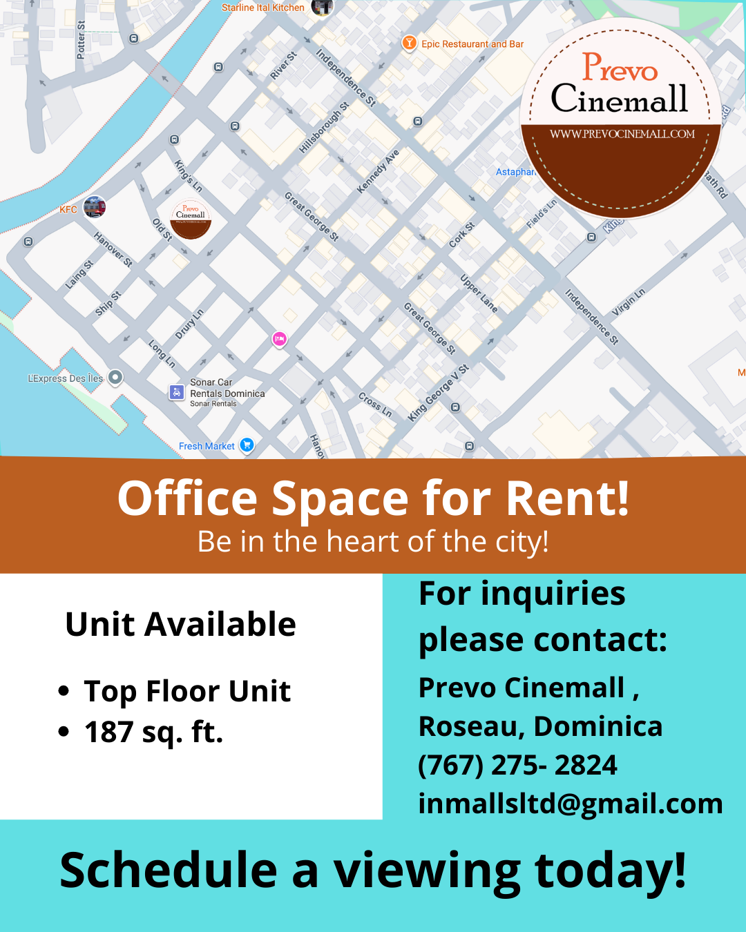 To lease a vacant unit, call 1-767-275-2824 or email inmallsltd@gmail.com